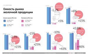 Емкость рынка молочной продукции хорошо представлена на инфографике. Как видно, по большинству направлений молочной промышленности отмечается рост. На этом фоне увеличивается потребность не только в улучшении качества молока, но и в модернизации производственного процесса, а точнее обеспечения его безопасности.