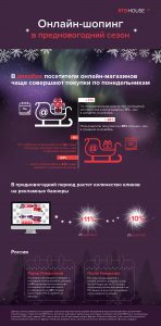 Российские интернет-пользователи также более активны в будние дни, чем в выходные. Но, показатели роста визитов и транзакций растут по мере приближения праздника Нового Года. Последний пик продаж отмечается в предновогоднюю неделю. Например, 26 декабря 2016 года количество посещений интернет-магазинов возросло на 5%, а количество транзакций увеличилось на 23% по сравнению со средними показателями месяца. С новогоднего вечера до Рождества (7 января) в России наблюдается крайне низкая активность онлайн-покупателей. Они редко заходят за покупками в интернет: число посещений на 7% меньше, чем в среднем в декабре, и совершается на 16% меньше транзакций. Показатели возвращаются к прежним значениям после рождественских выходных: 9 января уже отмечается рост посещений на 7%, и покупок совершается на 16% больше (по сравнению со средними показателями января).