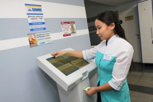 Так, во вновь установленных системах электронной очереди в лабораториях города Актобе и Экибастуз меню выбора услуг, голосовое оповещение и информация на талоне предоставлены на русском и казахском языках.