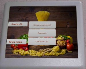 Алгоритм работы системы очень прост. Гость может самостоятельно на сенсорном меню экрана выбрать блюда для заказа и спокойно наблюдать стадию его подготовки на информационном табло в зоне ожидания. При этом номер талончика с информацией о заказе, который печатается на терминале для посетителя, одновременно дублируется на кухню. Так повар может без потери лишнего времени приступить к приготовлению блюд.